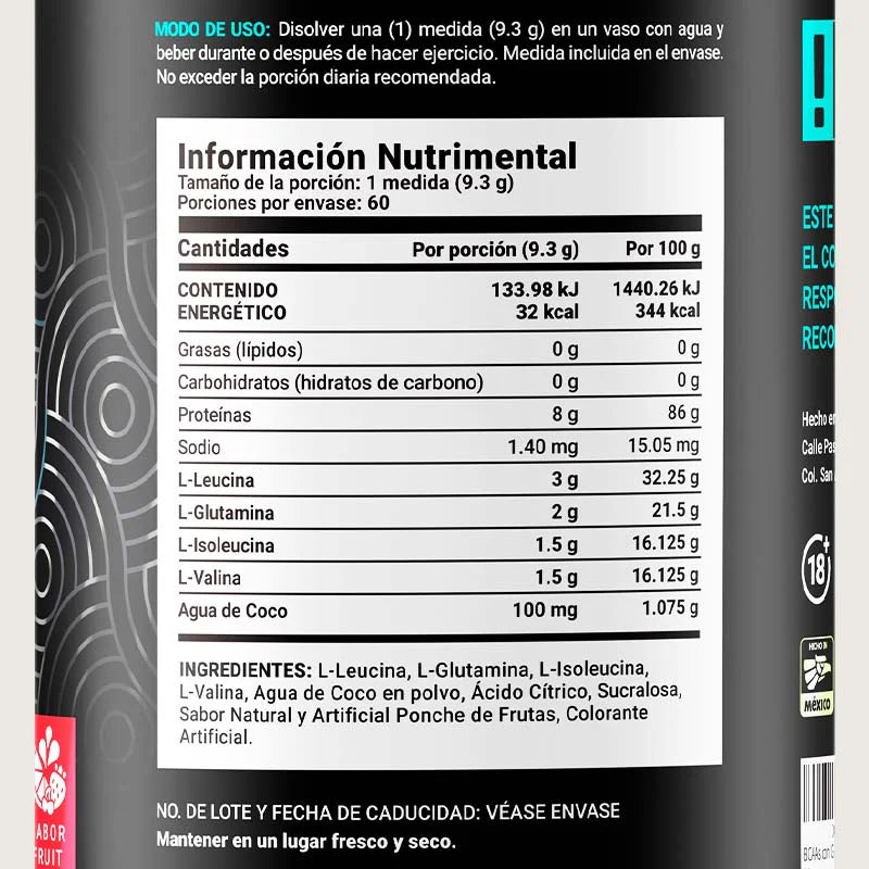 ¡Alcanza tu máximo potencial con BCAAs + Glutamine B Life®! Cada porción está enriquecida con L-Leucina, L-Isoleucina, L-Valina, L-Glutamina y Agua de Coco, ofreciendo un delicioso sabor a Fruit Punch.