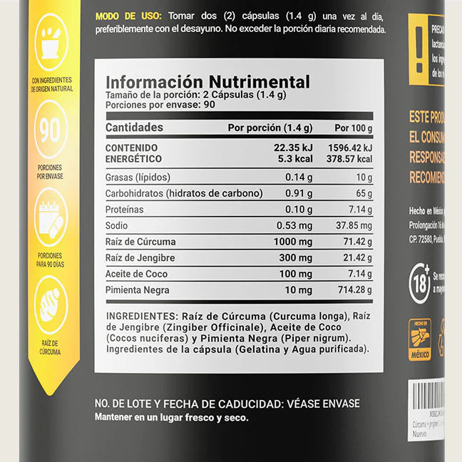 Turmeric + Ginger | Raíz de Cúrcuma y Jengibre 180 CAPSULAS